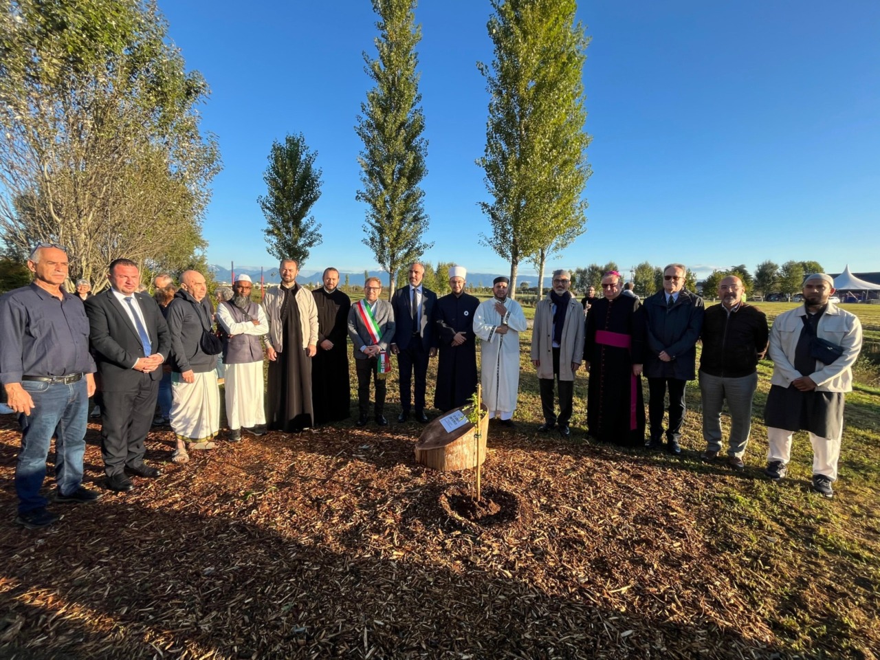 Dopo i saluti del sindaco Giacomo Possamai era prevista una passeggiata all’alba, seguita da una preghiera interreligiosa. Il programma prevede inoltre la piantumazione di una quercia e l’apposizione di una targa a ricordo dell’incontro, con la chiusura affidata a un altro brano musicale.