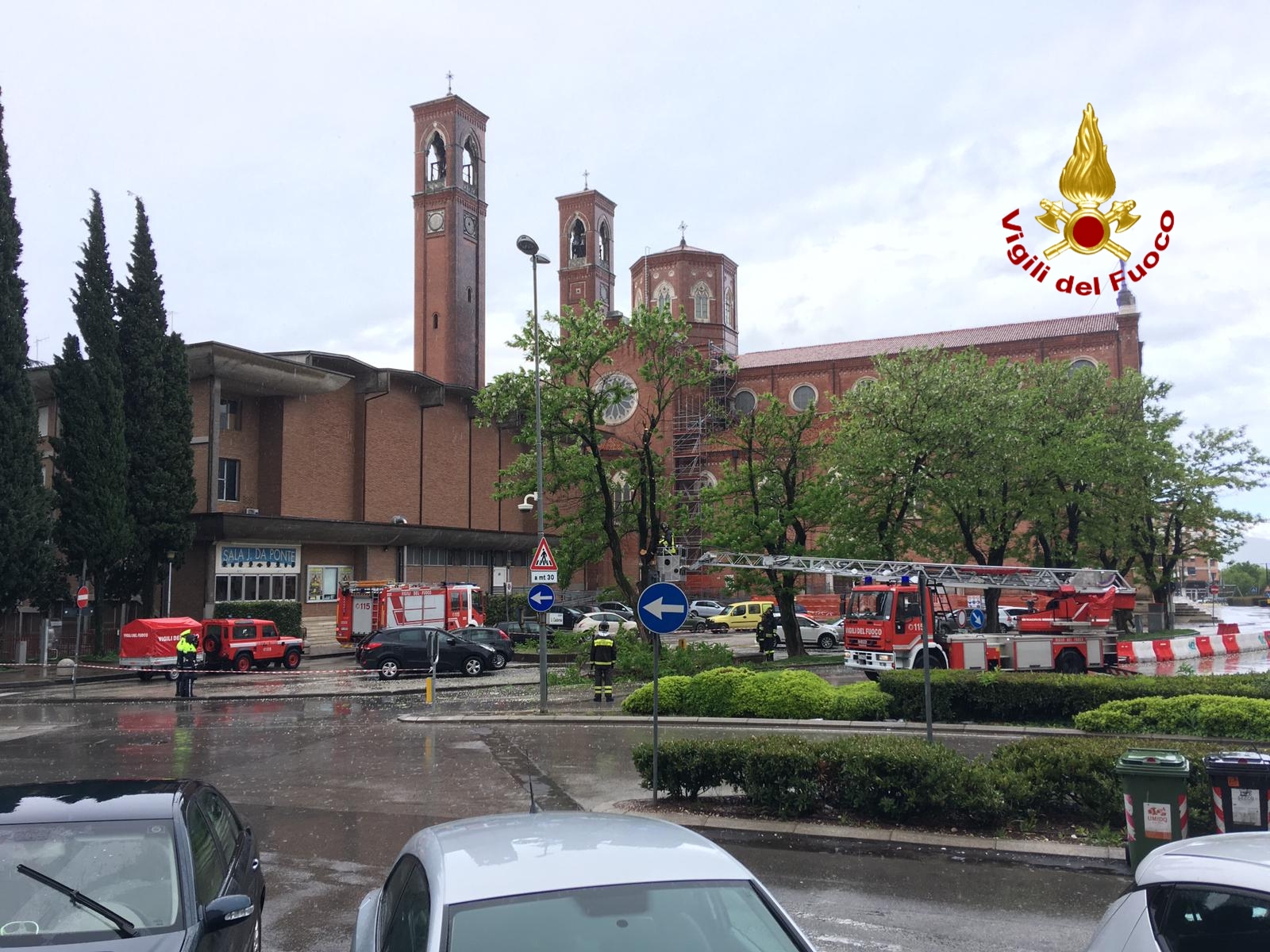 Sono una decina gli interventi dei vigili del fuoco per gli eventi atmosferici delle ultime ore, che hanno colpito la provincia di Vicenza. L’intervento più grave il distacco della Croce dal campanile di Santorso. Alle ore 9:45 Il personale dei pompieri del distaccamento di Schio è intervenuto presso presso la Chiesa di Santorso per la caduta della Croce posta sulla sommità del campanile di Santa Maria immacolata, alto oltre 80 metri. La croce in ferro di circa 40 kg è caduta sulle gradinate della Chiesa, mentre all’interno si stava officiando la Santa Messa e il rito del battesimo. I vigili del fuoco hanno provveduto a transennare la zona circostante il campanile per il pericolo di un ulteriore crollo della sfera basamento della Croce caduta.