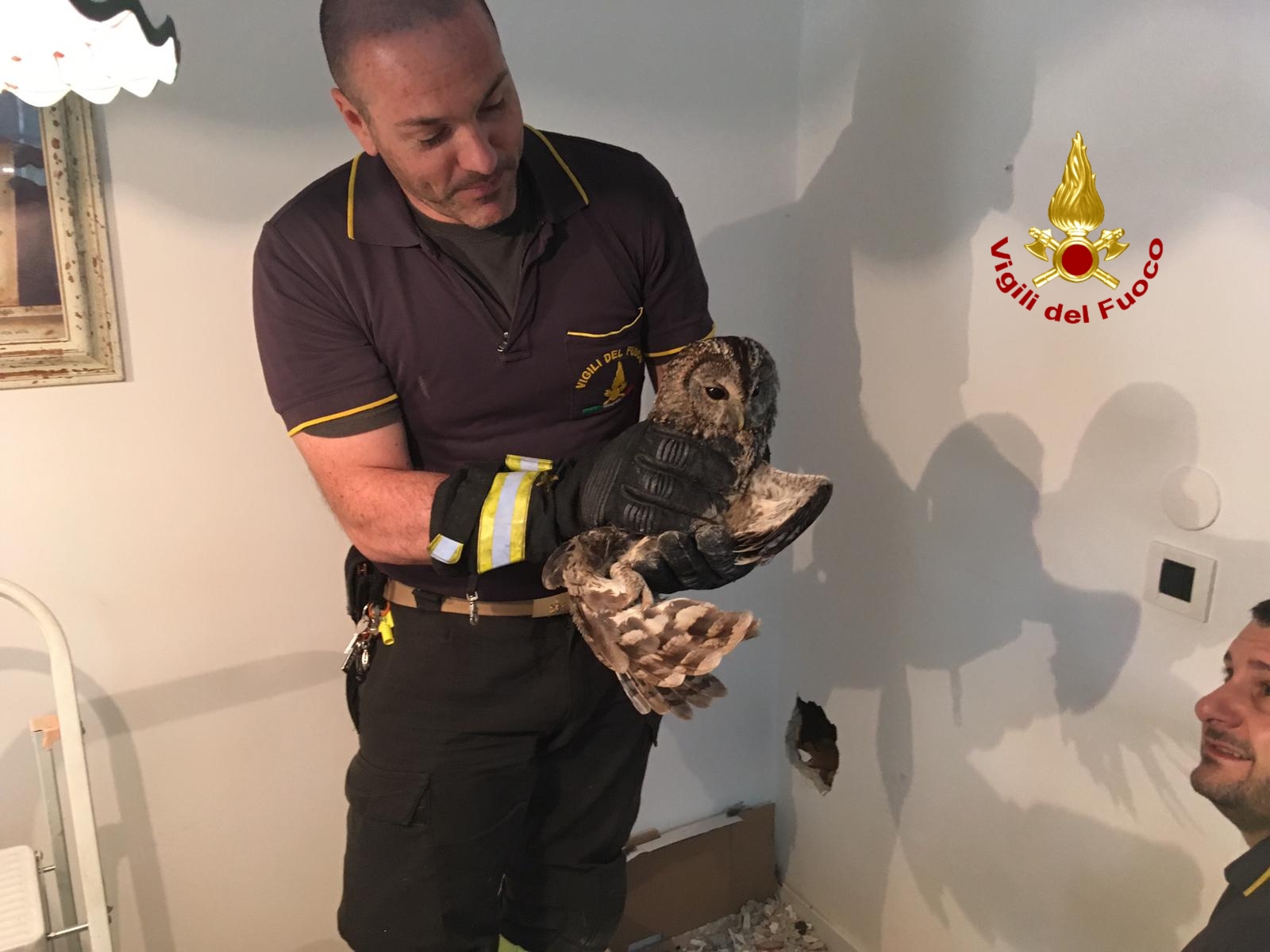 Allocco cade nella canna fumaria di un’abitazione ad Altavilla Vicentina, a  salvarlo e liberarlo ci pensano i vigili del fuoco. È successo questa mattina, quando i proprietari di una casa di via Monte Corno hanno chiamato la centrale operativa  del 115, riferendo dei rumori provenienti da dentro il muro. I pompieri arrivati dalla centrale, sono riusciti ad individuare la giusta provenienza dei rumori e dopo aver praticato un piccolo foro nel muro sono riusciti ad afferrare il rapace e tirarlo fuori dallo scarico dei fumi. L’uccello in buone condizioni è  stato liberato, riprendendo il volo nella collina vicino all’abitazione.