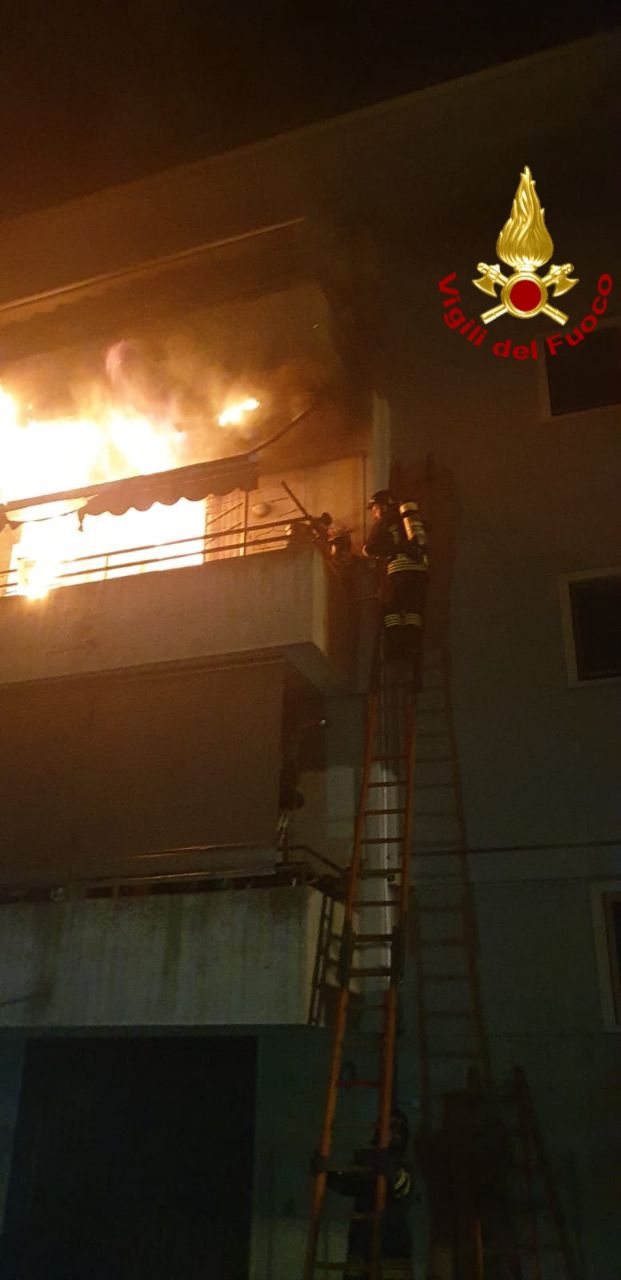 All’arrivo delle squadre le lingue di fuoco venivano fuori dall’appartamento, mentre la donna era rannicchiata nell’angolo del balcone.  Montata la scala italiana due vigili del fuoco hanno raggiunto la donna, uno si è messo subito a protezione dell’anziana mentre l’altro l’ha bagnata, iniziando poi le operazioni di spegnimento. Arrivata sul posto l’autoscala la signora 81enne, spaventata, ma in  buono stato è stata caricata sul cestello e portata a terra, dove è stata presa in cura dal personale del suem 118 e portata in ospedale per un ulteriore controllo.