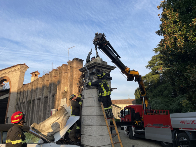 Il conducente ne è uscito praticamente illeso, ma la base della colonna e la scultura sopra di essa sono state gravemente danneggiate