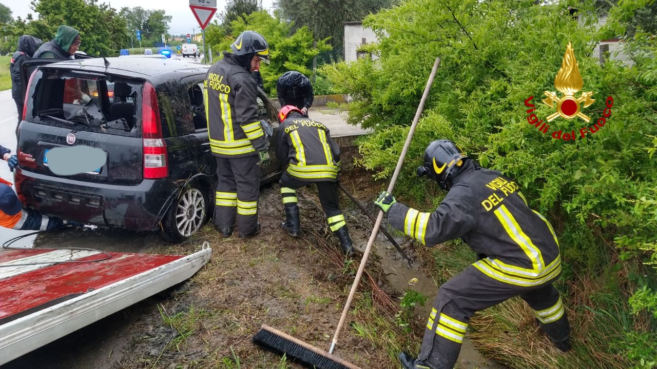 Auto nel fossato: due persone coinvolte