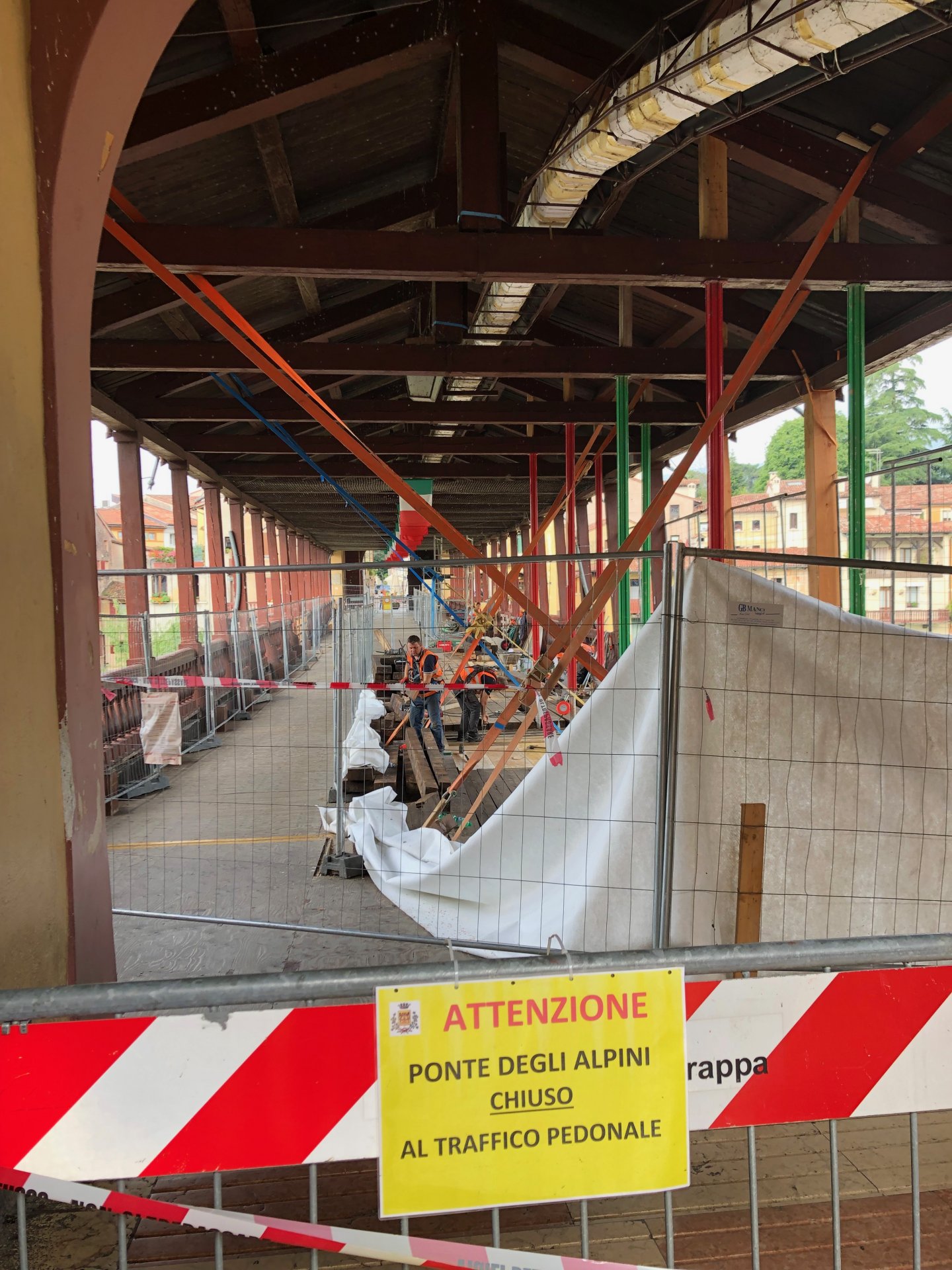 Dalla mattina di mercoledì 5 giugno il monumento di Bassano del Grappa, dove continuano i lavori di restauro, è stato chiuso al traffico pedonale.