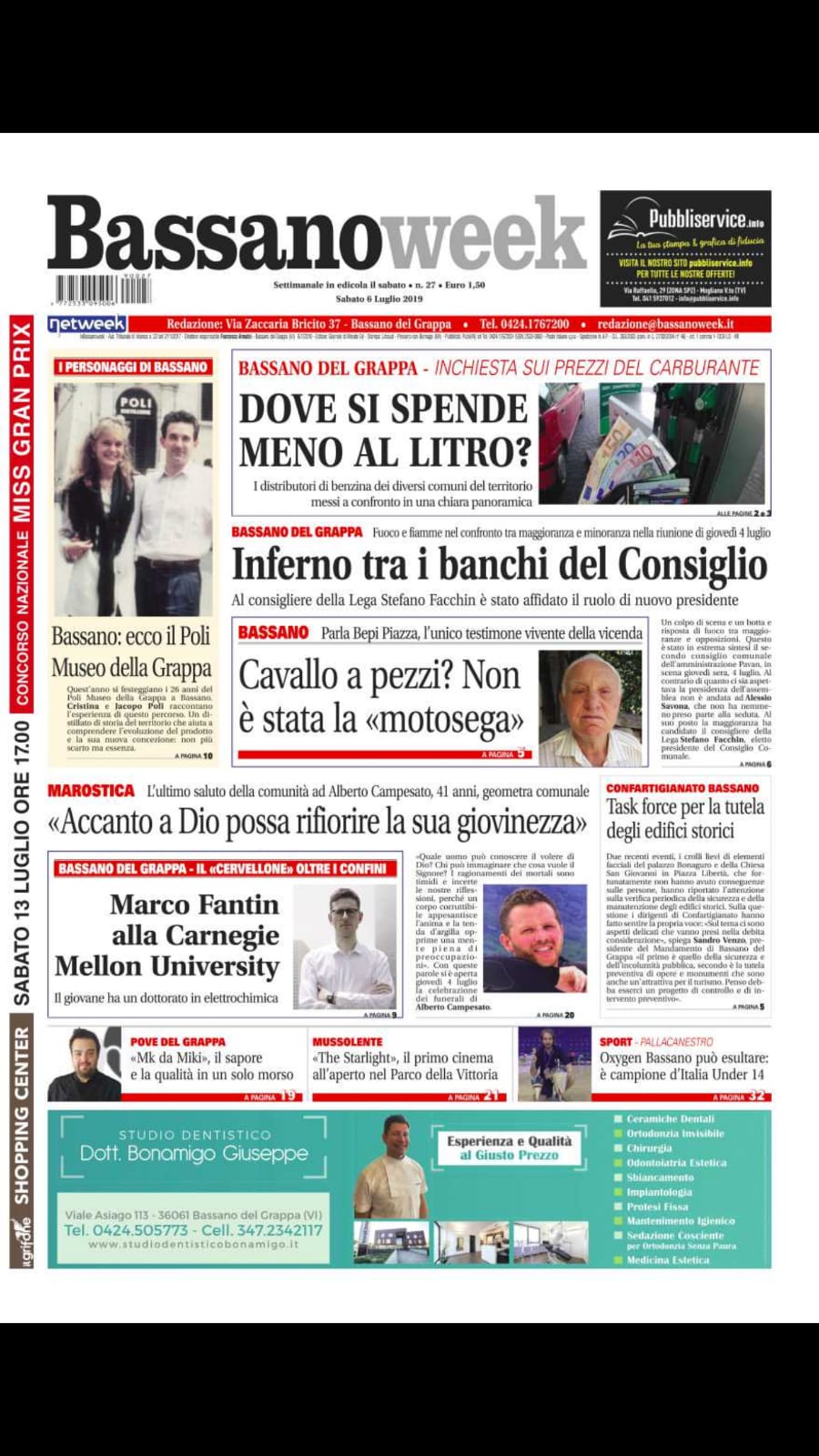 Bassanoweek è in edicola con un nuovo numero! Il settimanale di Bassano, con tante notizie di cronaca, cultura e sport! 06/07/2019 alle 08:00 Bassanoweek è in edicola con un nuovo numero!