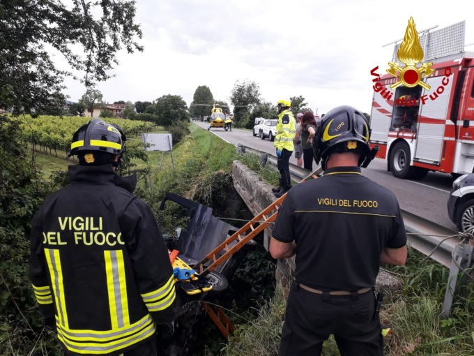 La SP 500 nel tratto interessato dall’incidente è rimasta bloccata durante le operazioni di soccorso fino al decollo dell’elicottero. La polizia locale ha eseguito i rilievi del sinistro. Le operazioni di soccorso dei vigili del fuoco sono terminate alle 21:00.