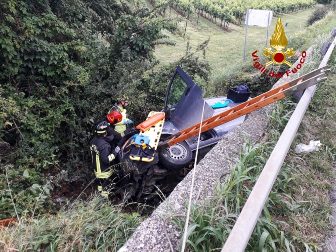 I pompieri arrivati da Lonigo, hanno messo in sicurezza il furgone ed estratto il conducente, rimasto incastrato, che è stato stabilizzato dal personale sanitario del Suem per poi essere elitrasportato in ospedale.