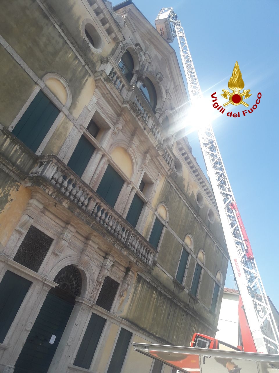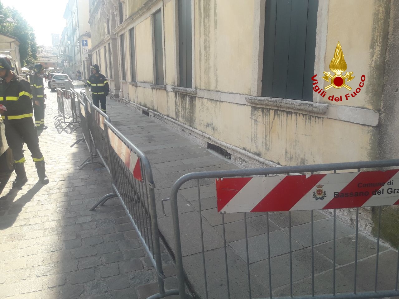 Questa mattina alle ore 9 circa, i vigili de fuoco sono intervenuti in via Angarano a Bassano del Grappa per la caduta di alcuni calcinacci di un cordolo in cemento del tetto di palazzo Bonaguro, che ospita il museo civico.