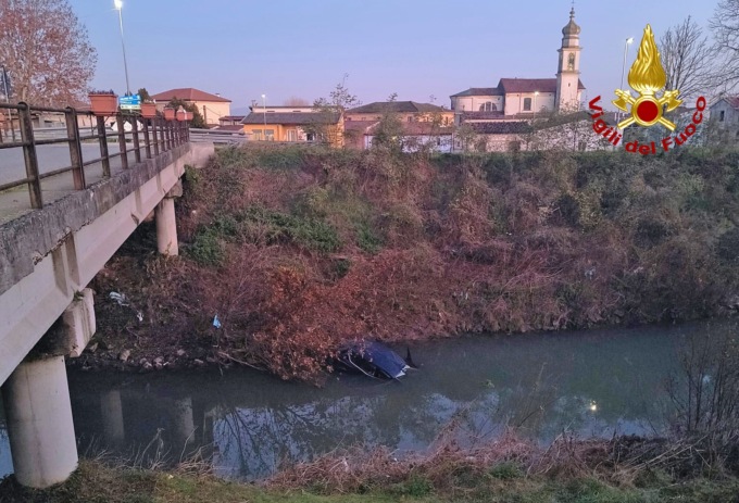 Nel tardo pomeriggio è stato richiesto l’intervento dei vigili del fuoco, dato che il carro attrezzi non è riuscito da solo a recuperare il veicolo nel fiume. I vigili del fuoco, intervenuti da Lonigo e Vicenza con i sommozzatori e l’autogrù, hanno imbragato l’auto che è stata issata fino al piano stradale.