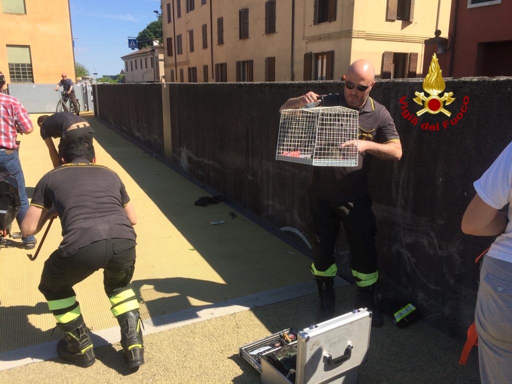 Gattino finisce sotto una griglia metallica lungo la pista ciclabile in località Ponte di Debba a Vicenza, a salvarlo, oggi pomeriggio, ci hanno pensato i vigili del fuoco. L’allarme dopo la richiesta di alcuni passanti, che hanno sentito il miagolio dell’animale in difficoltà. La squadra dei pompieri arrivati dalla centrale hanno deviato parzialmente la circolazione ciclistica, smontato la griglia, riuscendo a recuperare il micetto. Il gattino una volta ripreso è stato affidato alle cure di una volontaria dell’ENPA presente sul posto.