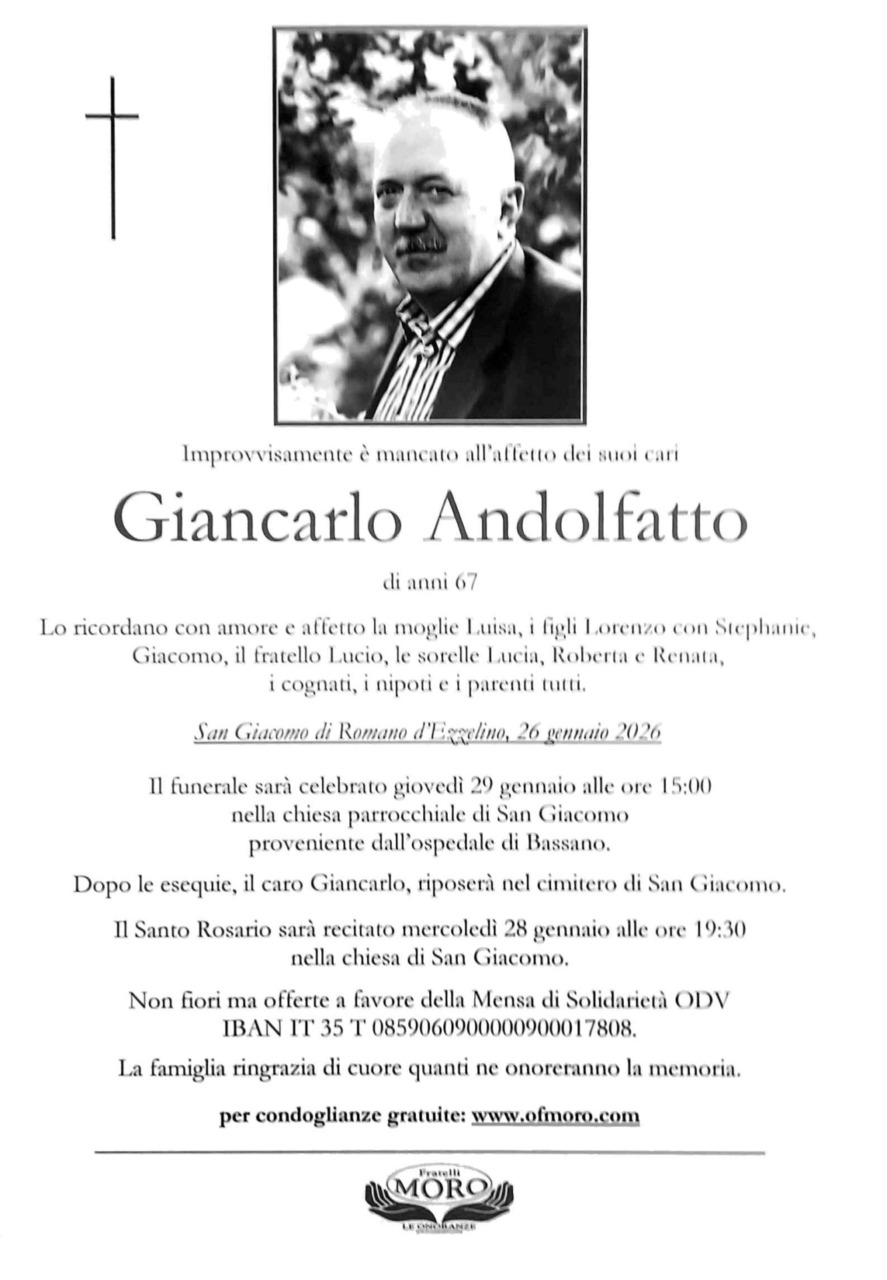 Giancarlo Andolfatto aveva 67 anni (ne avrebbe compiuti 68 a luglio), si è spento improvvisamente questa mattina.