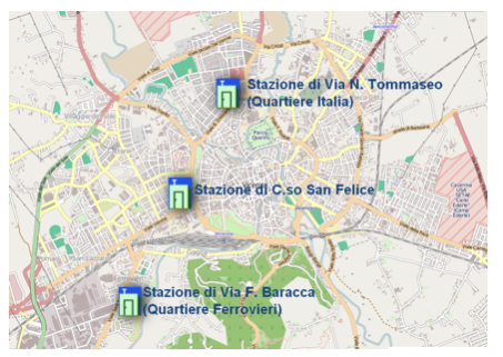 La mappa riporta l’ubicazione delle stazioni di monitoraggio ARPAV nel comune di Vicenza.