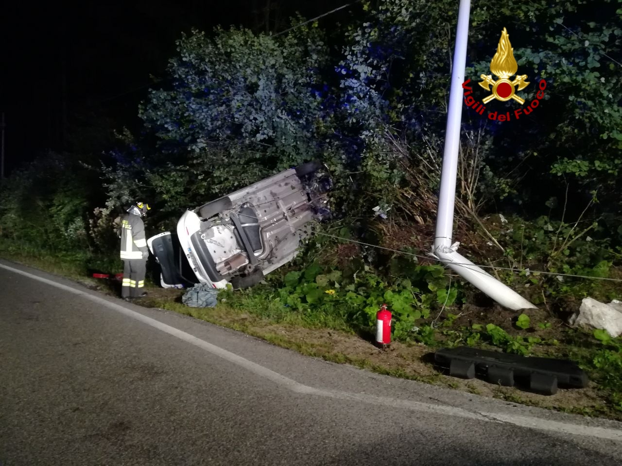 Le operazioni di soccorso dei vigili del fuoco sono terminate dopo circa due ore, con la rimozione dell’auto da parte del soccorso stradale e la messa in sicurezza di un palo del telefono e della segnaletica stradale, danneggiata durante l’incidente.