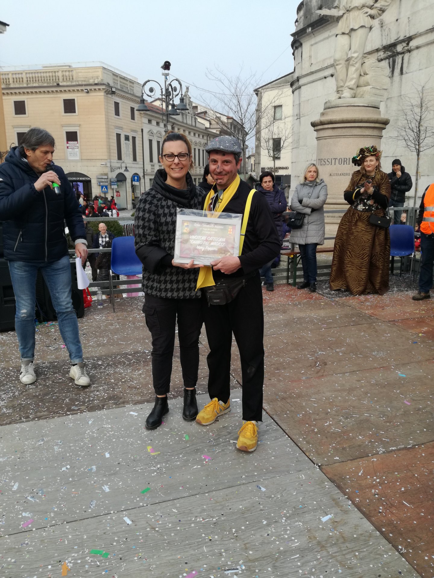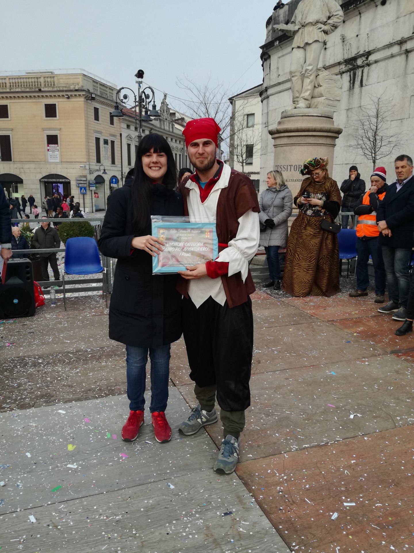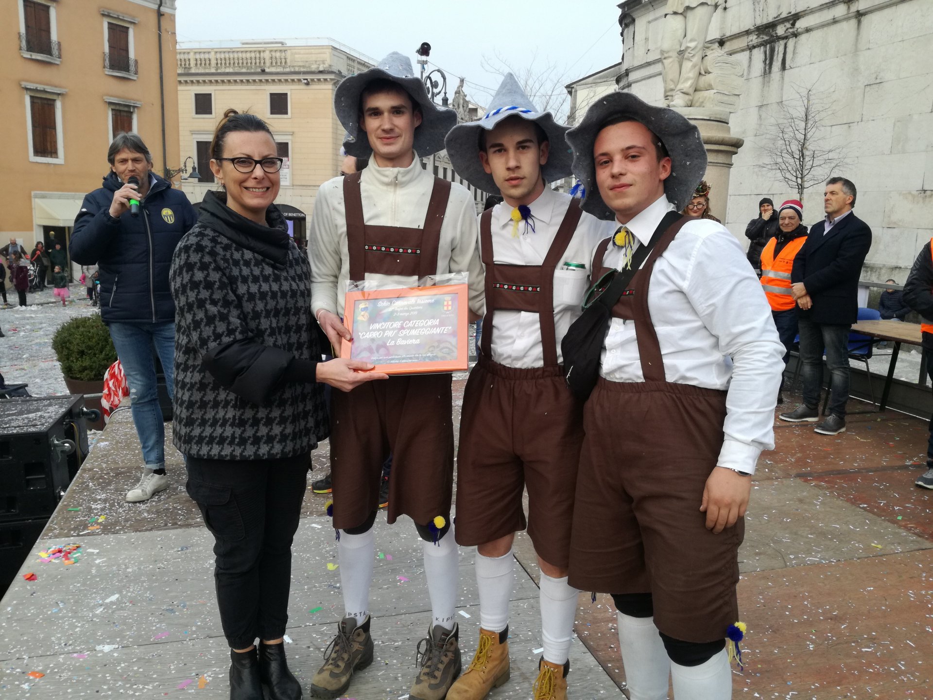 Braccia al cielo anche per Massimo Dal Prà capocarro dei quartieri SS. Trinità e Santa Croce al quale è andato il Premio del cuore assegnato da Ascom e «Cuore di Schio». Una targa poi a tutti i capitani dei vari quartieri: la targa del «Carro più» è andato a Ca’ Trenta per «Ultima corsa?», la targa «Carro più spumeggiante» è stato consegnato nelle mani del quartiere Giavenale per il carro «La Baviera», la targa al «Carro più magico» ai quartieri SS. Trinità e Santa Croce per «Mary Poppins». La targa «Carro più avventuriero», invece, è stata consegnata al quartiere Poleo, Aste, San Martino, Cappuccini è andato a Stefano Aver con «I pirati».