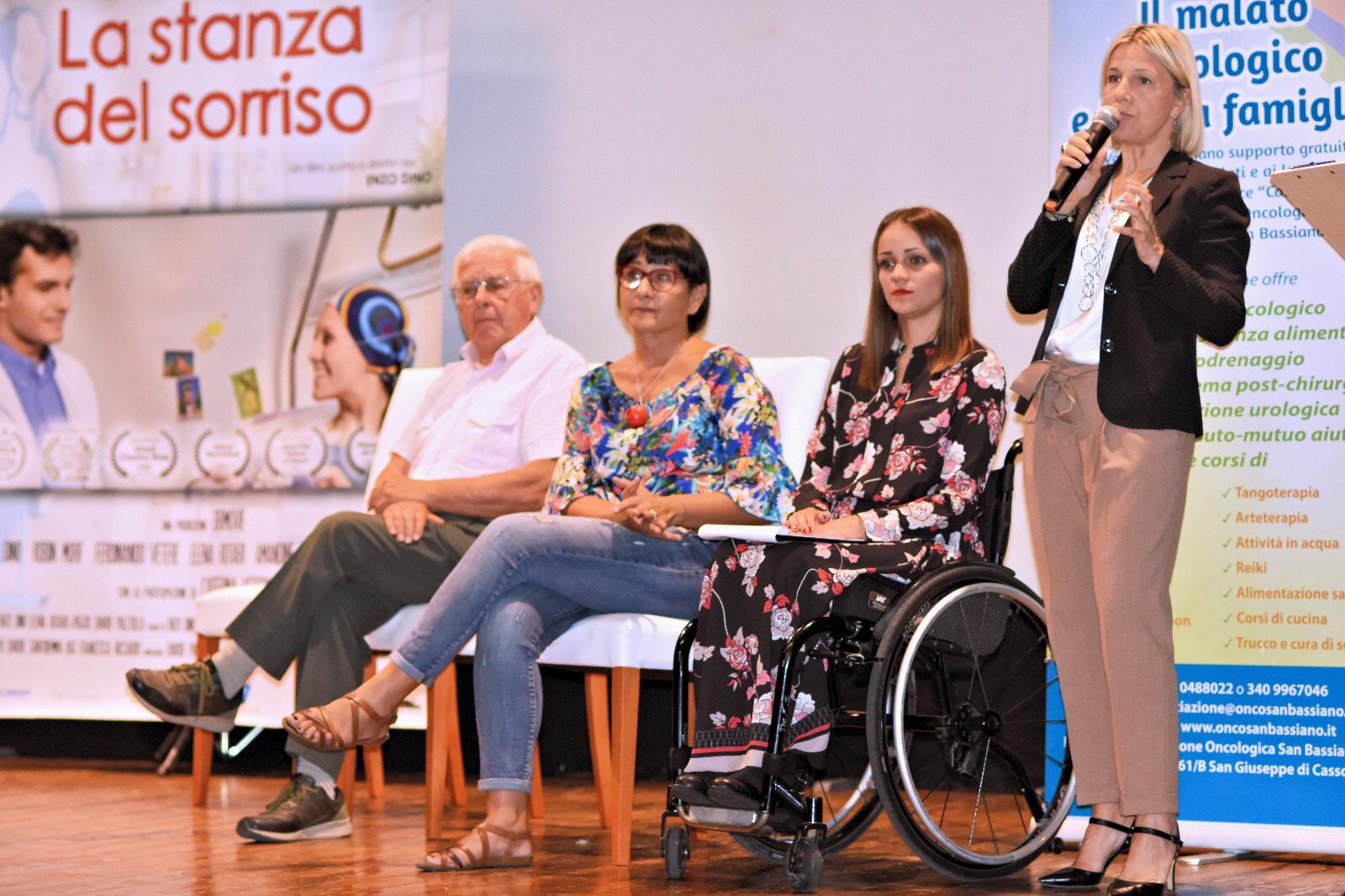 Una sala gremita ha fatto da cornice alla proiezione del film, un’iniziativa promossa dall’Amministrazione comunale e dall’Assessorato al Sociale per sensibilizzare il pubblico sul tema della malattia oncologica, portando gli spettatori alla riflessione ed alla scoperta di quanto un sorriso possa essere terapeutico. La proiezione della pellicola è stata preceduta da un dibattito che ha visto la partecipazione del primo cittadino cartiglianese Germano Racchella, dell’Assessore regionale alla Sanità Manuela Lanzarin, dell’Assessore al Sociale ed alle Politiche Giovanili di Cartigliano Nicoletta Bresolin e di tre membri del cast: l’attore-regista Enzo Dino, la produttrice esecutiva Elena Rotari ed il compositore Alberto Masoni. Moderatore della serata è stato Alex Iuliano del Giornale di Vicenza.