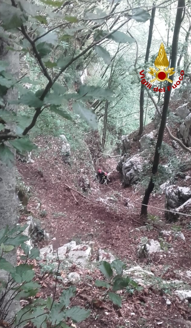 L’animale era scivolato insieme a un altro cane mentre con i propri padroni stavano partecipando a una battuta di caccia. Il primo segugio, precipitato nei primi metri del dirupo, è stato recuperato dal proprietario, mentre per “Brina” ruzzolata per oltre 60 metri per il ripido pendio è stato necessario l’intervento dei vigili del fuoco.