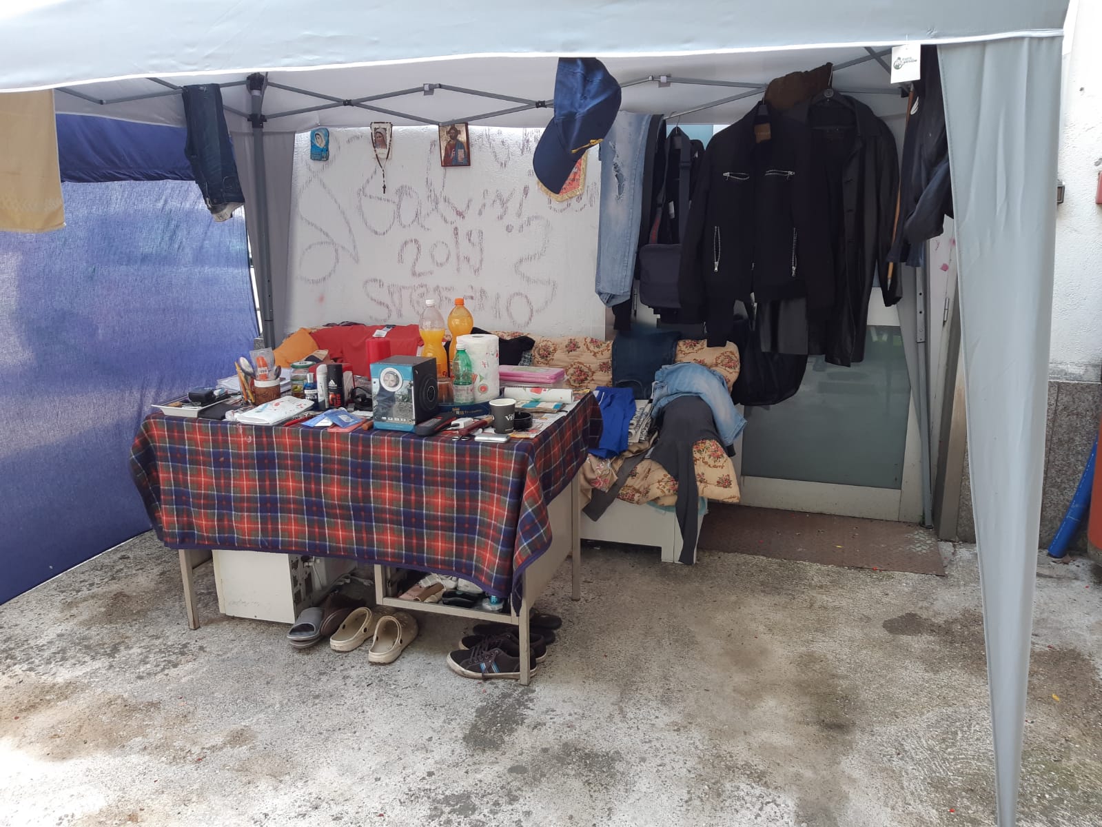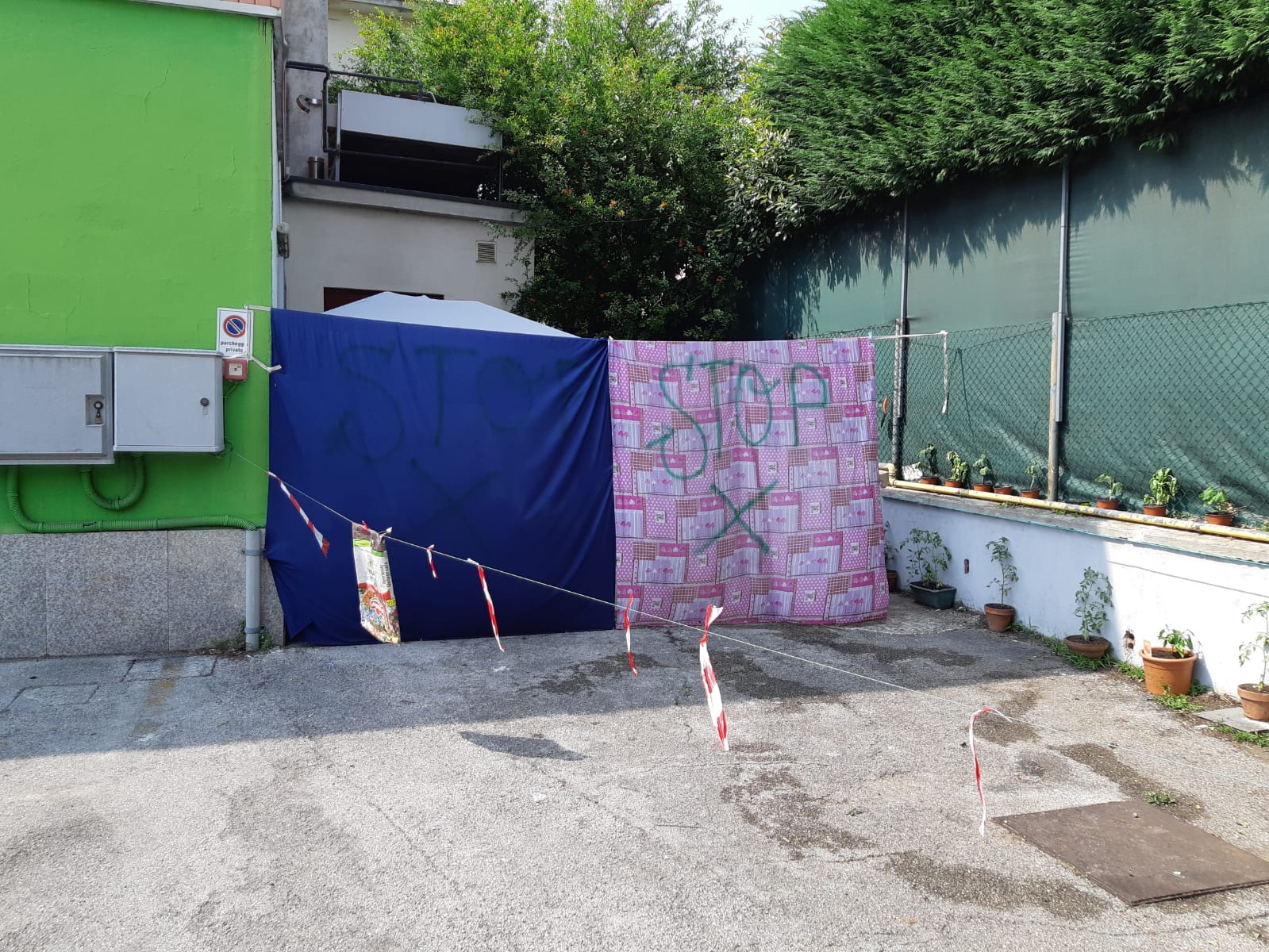 Intorno alla metà del mese di maggio L.F. balzava agli onori della cronaca per avere imbrattato con scritte l’area laterale dell’edificio. A seguito di comunicazioni pervenute dai residenti, che segnalavano la presenza di una sorta di “abitazione di fortuna” ricavata nell’area laterale dell’edificio, in data 25 giugno la polizia locale si è recata sul posto rilevando che, effettivamente, L.F. aveva realizzato un attendamento con tavoli, divano, suppellettili, capi d’abbigliamento ed effetti personali.