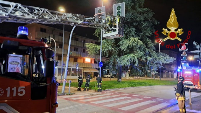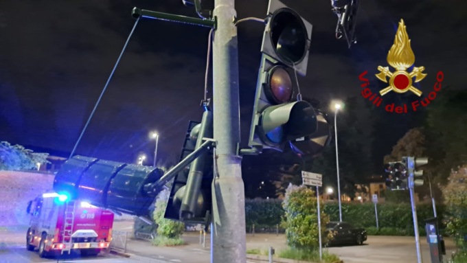 Sul posto sono giunti rapidamente i pompieri dalla centrale, che hanno operato con l’autoscala per mettere in sicurezza sia il veicolo che l’impianto semaforico gravemente danneggiato. Nonostante l’entità dell’incidente, il conducente dell’auto è stato fortunatamente trovato illeso e non ha richiesto cure mediche.