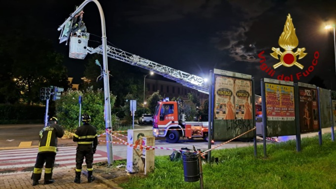 Nella notte tra venerdì 9 e sabato 10 maggio, poco prima delle 2:00, si è verificato un incidente stradale in viale D’Alviano, a Vicenza, nei pressi della rotatoria che si trova nelle immediate vicinanze dell’ospedale San Bortolo. Un’autovettura, per ragioni ancora da chiarire, è uscita fuori strada, finendo per impattare contro un palo di sostegno del semaforo. L’urto ha provocato danni consistenti al palo e alla centralina che regola l’impianto semaforico, rendendo necessario l’intervento delle squadre di vigili del fuoco.