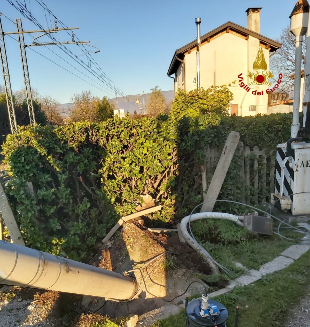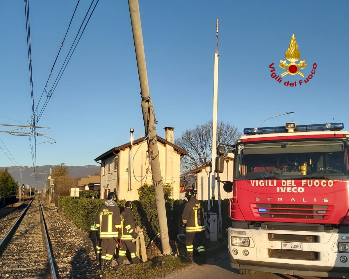 La squadra dei pompieri arrivata da Bassano del Grappa, ha provveduto al taglio del palo e al ripristino delle condizioni di sicurezza. Sul posto i tecnici della linea ferroviaria per il ripristino delle opere danneggiate del passaggio a livello.