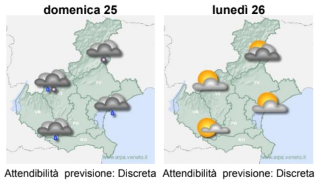 Su Dolomiti e settori orientali nuvolosità irregolare, a tratti consistente; altrove inizialmente ancora nuvoloso, poi graduale attenuazione della nuvolosità con comparsa di schiarite; possibili riduzioni della visibilità in pianura nelle ore più fredde. Saranno possibili ancora delle precipitazioni discontinue su Dolomiti e sui settori nord-orientali della pianura.