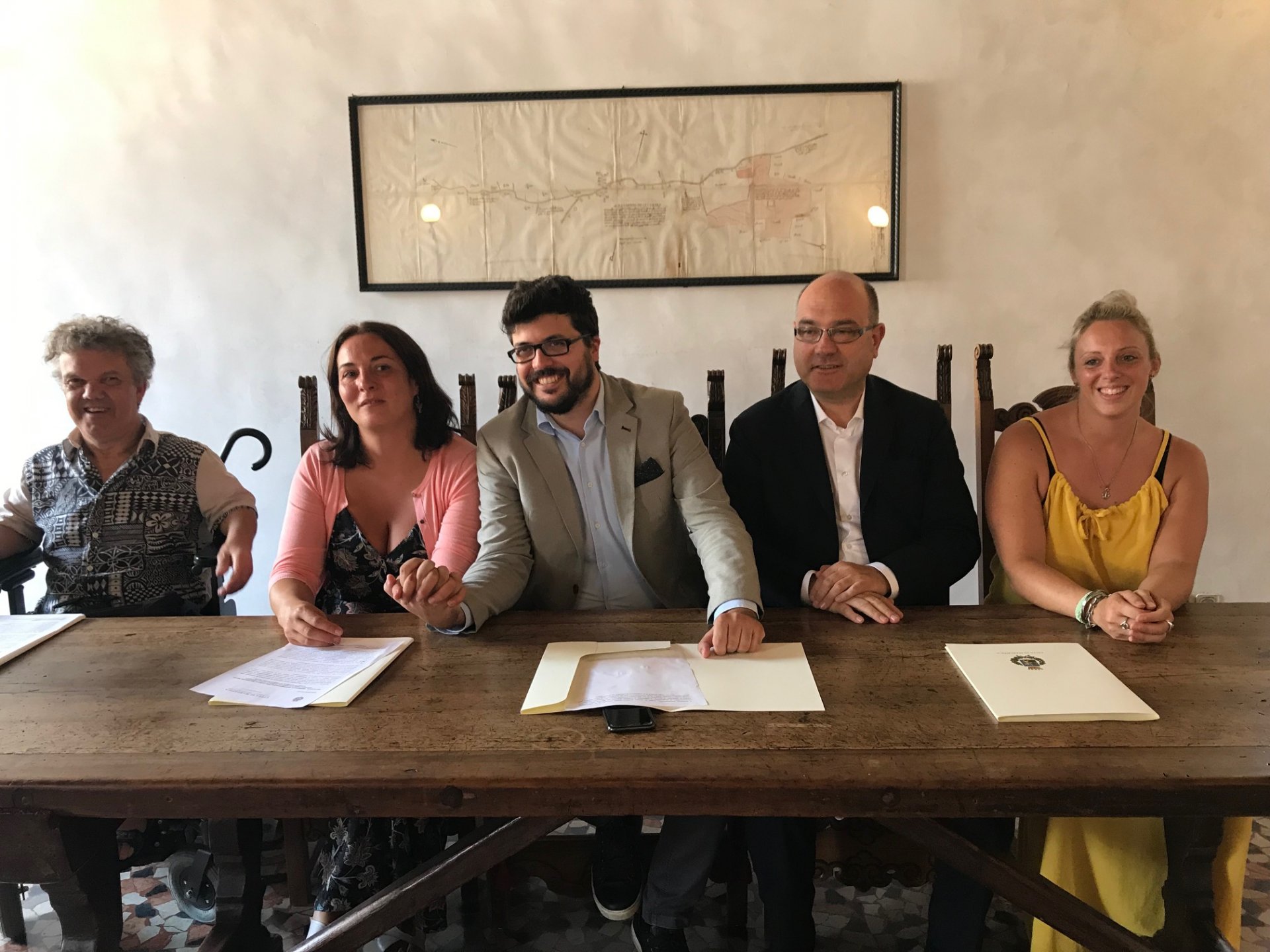 Alla conferenza stampa ha partecipato gran parte della giunta. Con il sindaco Matteo Mozzo e con Marialuisa Burei, erano presenti il vicesindaco Valentino Scomazzon, l’assessore al turismo e alle attività produttive Ylenia Bianchin, l’assessore ai servizi sociali Renato Bertolin, in un clima di serenità e un po’ di emozione.