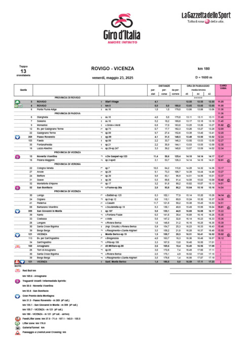 Giro d’Italia 2025, 13esima tappa da Rovigo a Vicenza