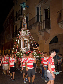 La Rua venne costruita per volontà della “Congregazione dei Nodari” (i Notai) che nel 1441 decise di sostituire il cero, destinato alla processione del Corpus Domini, con un simbolo più fastoso. Il nome deriva dalla presenza di una ruota, simbolo della rotazione degli incarichi dei Nodari, che ricorda una giostra per bambini.