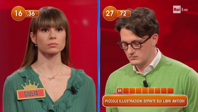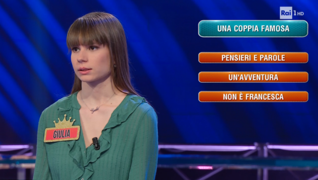 e lei risponde 1988. A correggere l’errore è Lorenzo che risponde 1957, ma abbiamo capito ormai che Giulia per la prossima puntata dovrà ripassare il cantautorato italiano. Al secondo giro Marco Liorni le chiede in che anno: